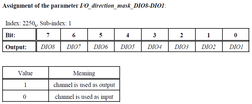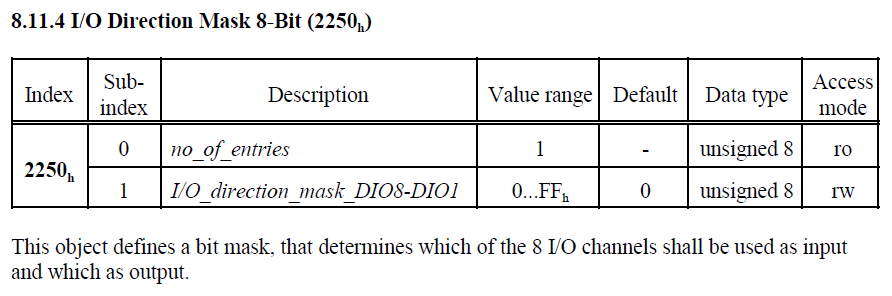 图六 CAN-CBX-DIO8 Object Index 2250 (I/O Direction Mask 8-Bit)