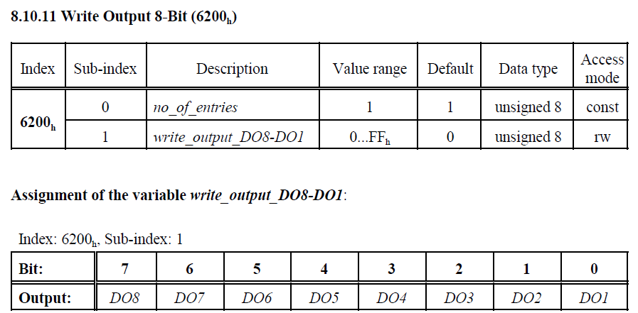 图八 CAN-CBX-DIO8 Object Index 6200 (Write Output 8-Bit)