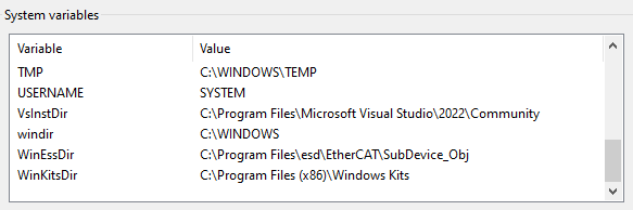 新增几个系统环境变量VsInstDir, WinEssDir, WinKitsDir,如下图。