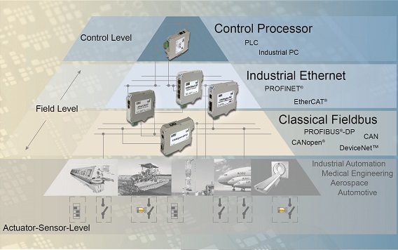 现如今工业4.0概念以及一些新的应用,对于数据和信息有很高的依赖性,而这种需求只有通过快速通讯协议才能满足,而其中有些还必须带有实时性的特性。这些概念通常只能通过工业以太网系统来实现。然而,许多工业机器与设备仍然由传统的现场总线协议来控制,如CAN 2.0,CANopen,DeviceNet以及PROFIBUS®。为了整合这些设备到更高级的网络之中,esd electronics公司提供了一系列网关和网桥产品,用来将CAN连接到工业以太网和其他现场总线。